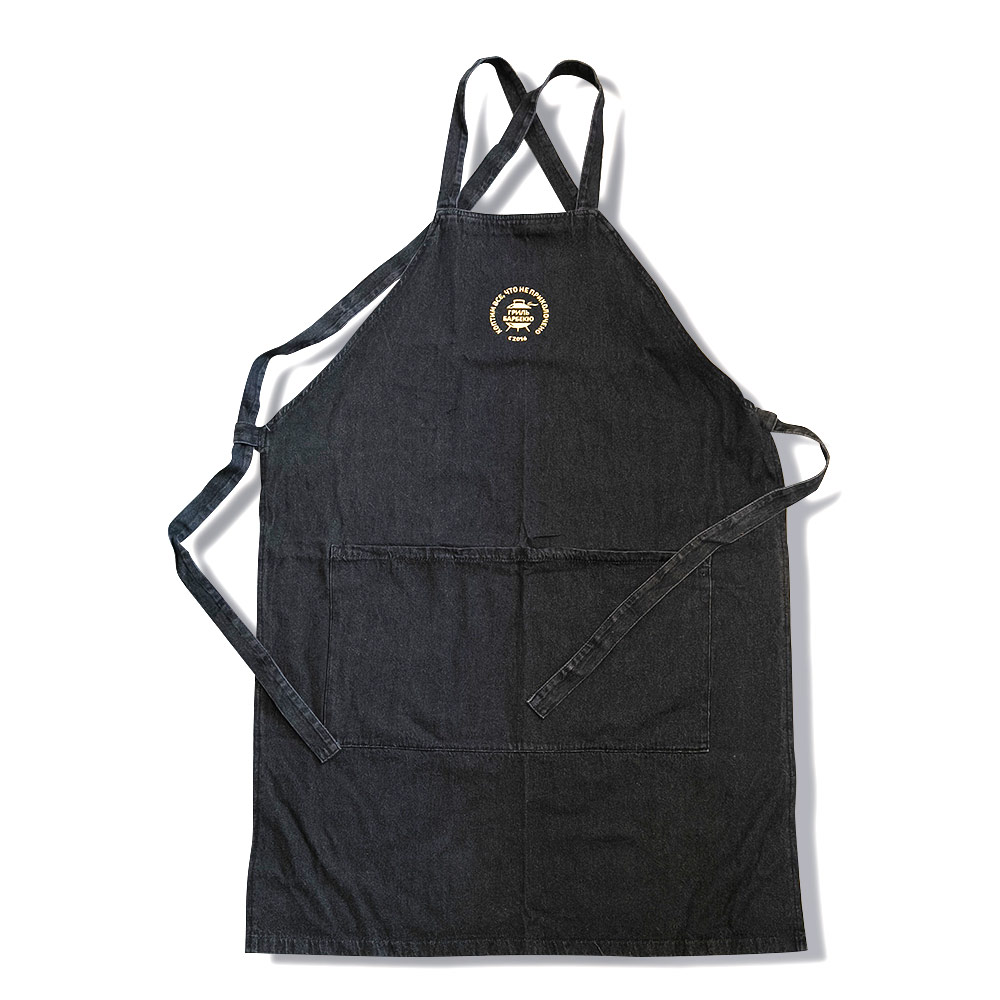 Фирменный фартук «Гриль-Барбекю Клуба». Стильный и удобный. Глубокие карманы, тесёмки для подгонки по фигуре.