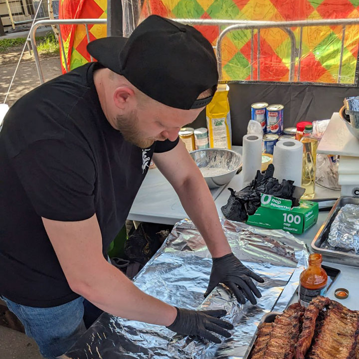 Гриль-совет: не отклеивайте стикер с козырька. Если вы испачкаете пальцы при работе с грилем, кепку можно будет поправить или снять левой рукой, держась за стикер.
