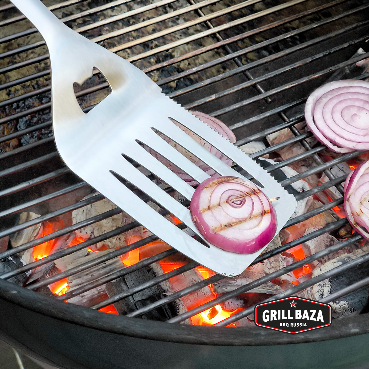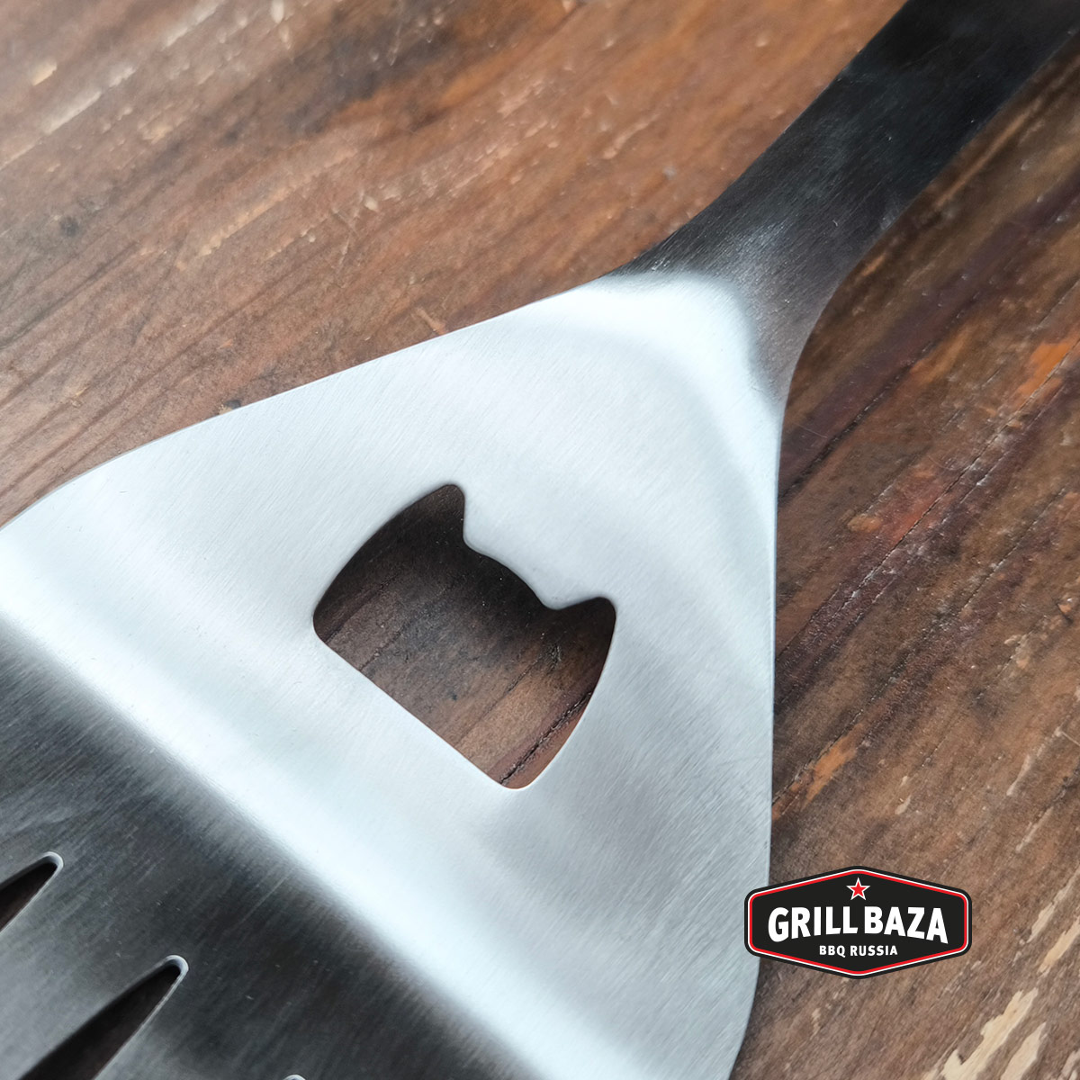 - Эта высококачественная лопатка для гриля выполнена из нержавеющей стали, для удобного хвата есть прорезиненная вставка на ручке