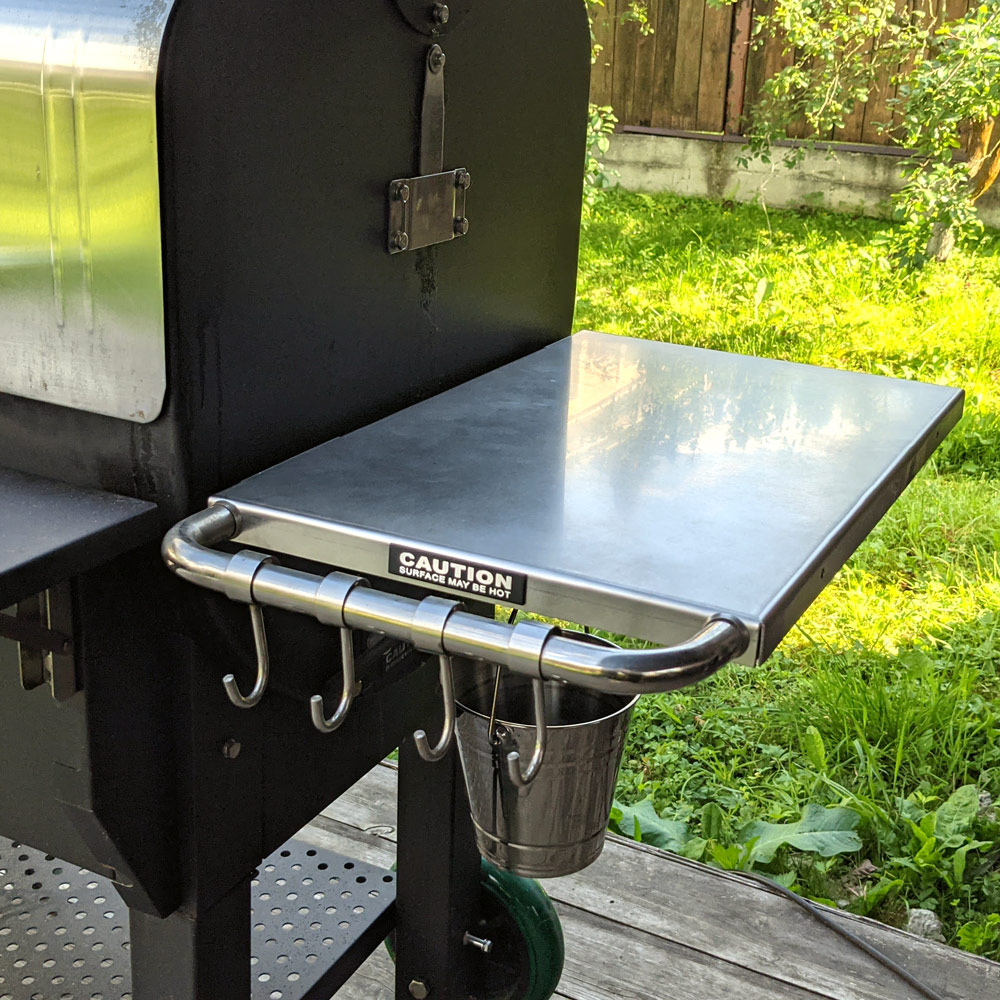 Накладка на боковой столик грилей GMG Ledge и Peak из нержавеющей стали. Легко устанавливается, легко чистится, красиво и привлекательно смотрится и продлевает срок службы бокового столика, защищая его поверхность.