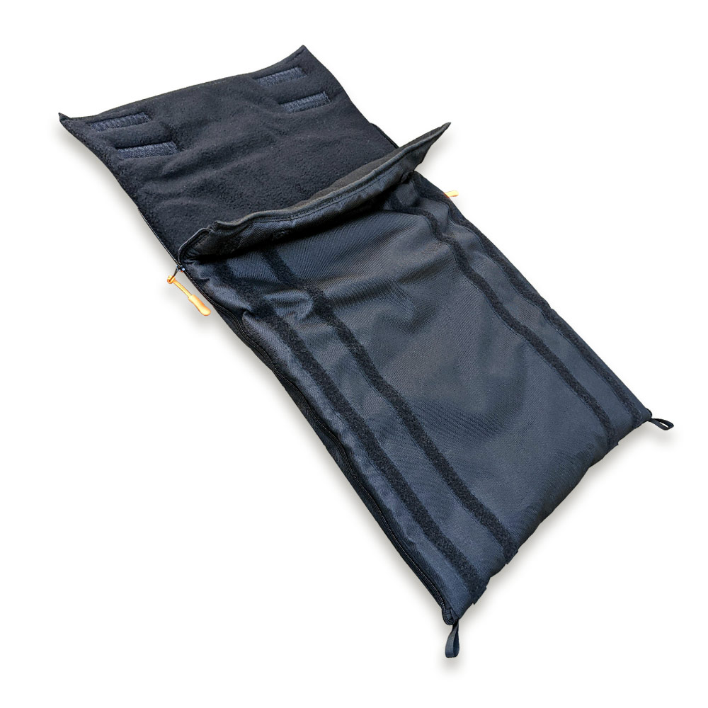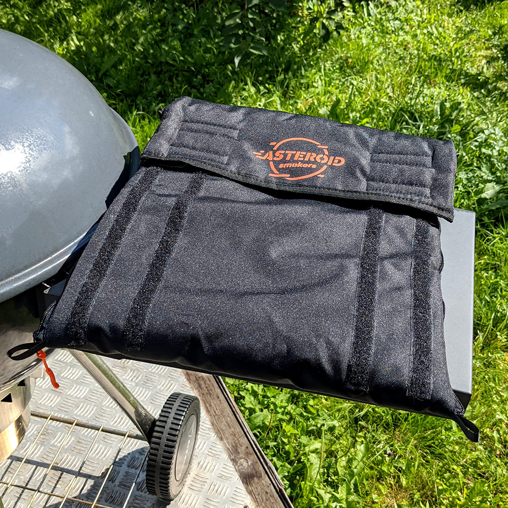 Снимите горячий брискет, лопатку, рёбрышки или любое другое блюдо с гриля, оберните пищевой плёнкой или фольгой, уложите в одеяло, застегните молнии и закройте подходящий к размеру блюда клапан.