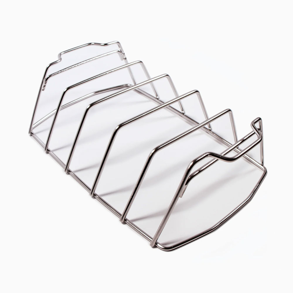 - Конструкция 2 в 1: подставка для рёбрышек и решётка для запекания крупных мясных блюд. Можно разместить 5 пластин рёбрышек, а можно приподнять над решёткой гриля ростбиф или курицу целиком.