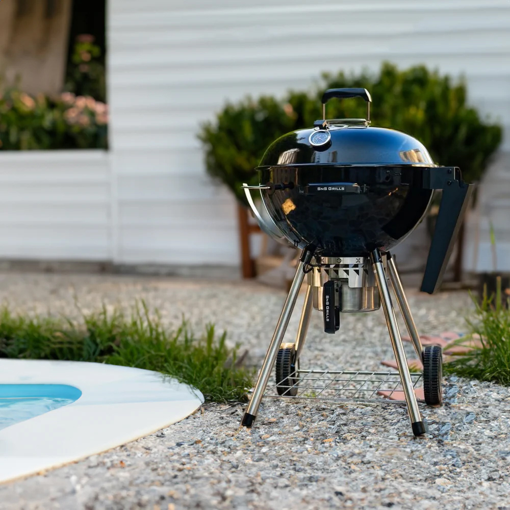 Угольный гриль SnS Kettle предоставит вам все возможности обычных грилей kettle, отлично совмещая их с преимуществами системы Slow ”N Sear — очень сильным жаром (когда это требуется), копчением low-and-slow и работой с двумя четко разделенными зонами приготовления. В этом комплекте гриль сразу поставляется с корзиной SnS Deluxe, так что вам обеспечены делюкс-жарка и копчение! Этот гриль сохраняет все лучшие характеристики традиционного kettle и значительно превосходит их. Тщательно продуманная модель, в которой множество учтенных нюансов и дополнительные опции помножены на высокий уровень качества. От мастеров гриля — мастерам гриля!