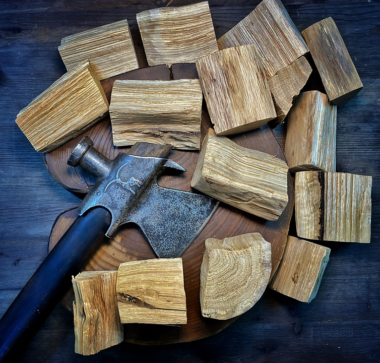 Небольшие, очищенные от коры, отшлифованные вручную и высушенные дубовые дрова для копчения «Есть с огня».