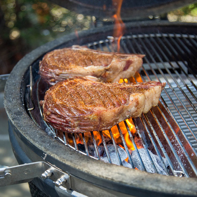Для тех, кто недавно её купил. Если что-то жарите на ней, то не надо, как в инструкции, сыпать много угля (брикетов) в корзину. Меньше половины корзины дают такой сильный жар, что стейки подрумяниваются за минуту. Непрямой жар с её помощью просто сказка.
