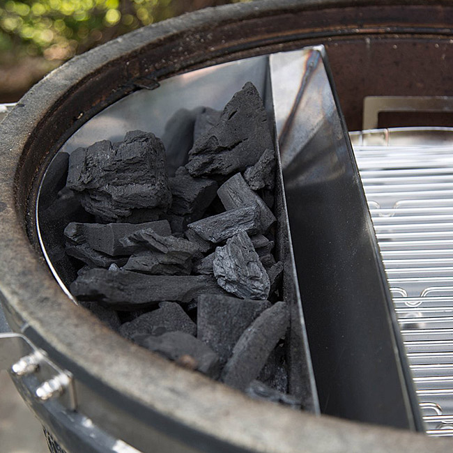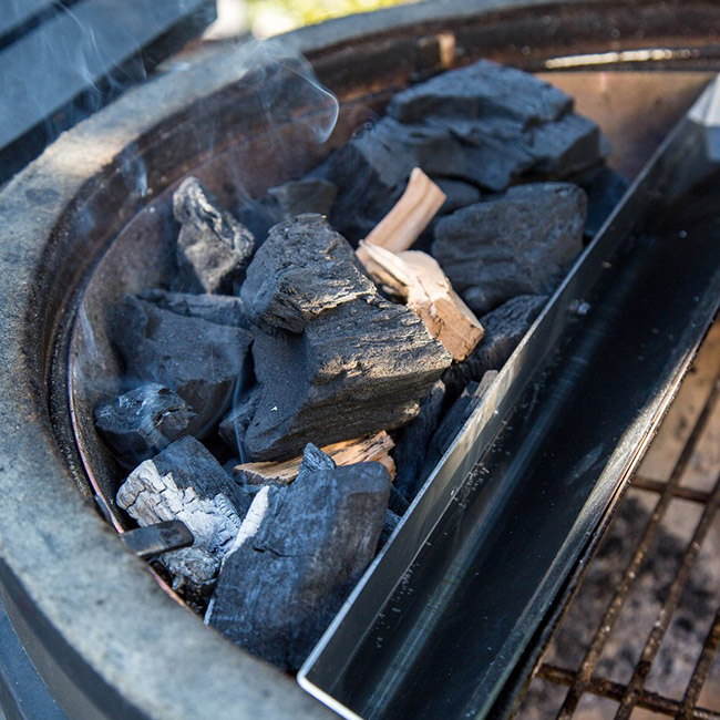 - В корзину помещается полный стартер брикетов, что даёт более 16 часов работы (и до 6 часов на обычном древесном угле) в режиме готовки low-and-slow (110-120 °C), и это отличная экономия!