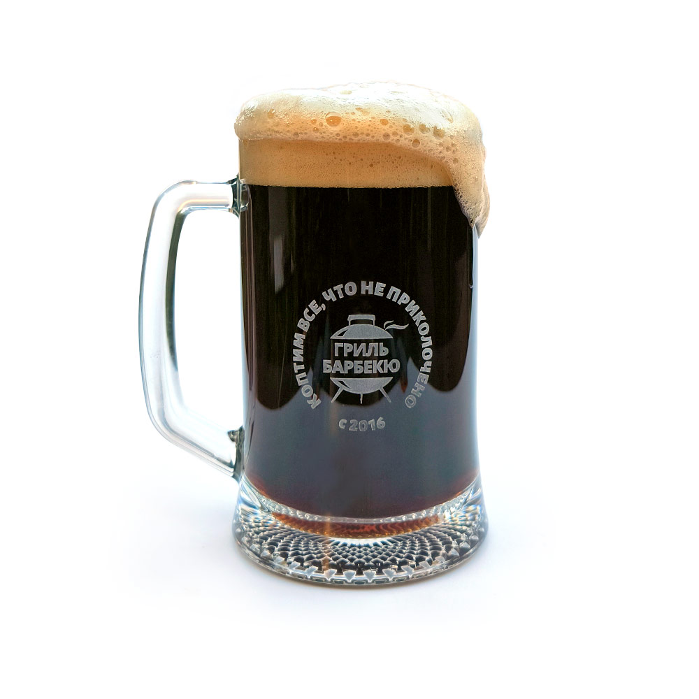Удобная большая кружка для пенного, с гравировкой логотипа. Потому что «какое же барбекю без жидкого хлеба»? Правильный ответ: не каждое.