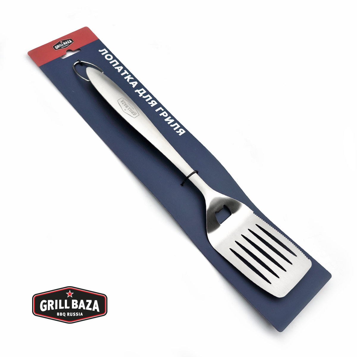 - Эта высококачественная лопатка для гриля выполнена из нержавеющей стали, для удобного хвата есть прорезиненная вставка на ручке