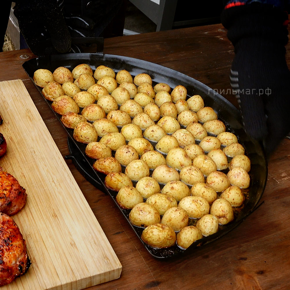 Долго выбирал между этим поддоном и нержавейкой. Решающим доводом в пользу этого стала цена и то, что мне в первую очередь нужен поддон, а не большая сковородка. Теперь, как поддон, он лежит в гриле постоянно. Иногда его достаю, мою и запекаю что-то на непрямом жаре. Его размеры позволяют готовить сразу много. А ещё удобно обжарить на прямом жаре толстые куски и сложить на поддон доходить. И потом на этом же поддоне подавать.