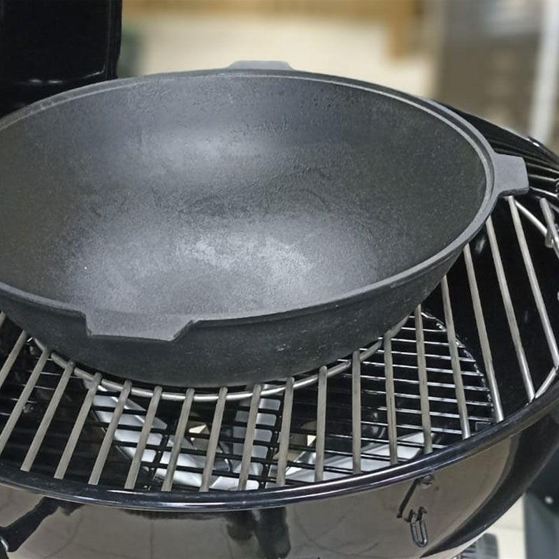 Эта решетка позволяет размещать на гриле чугунный казан, вок, садж и другие аксессуары, которые устанавливаются на центральное отверстие. Кроме того, решетку удобно использовать для Vortex.