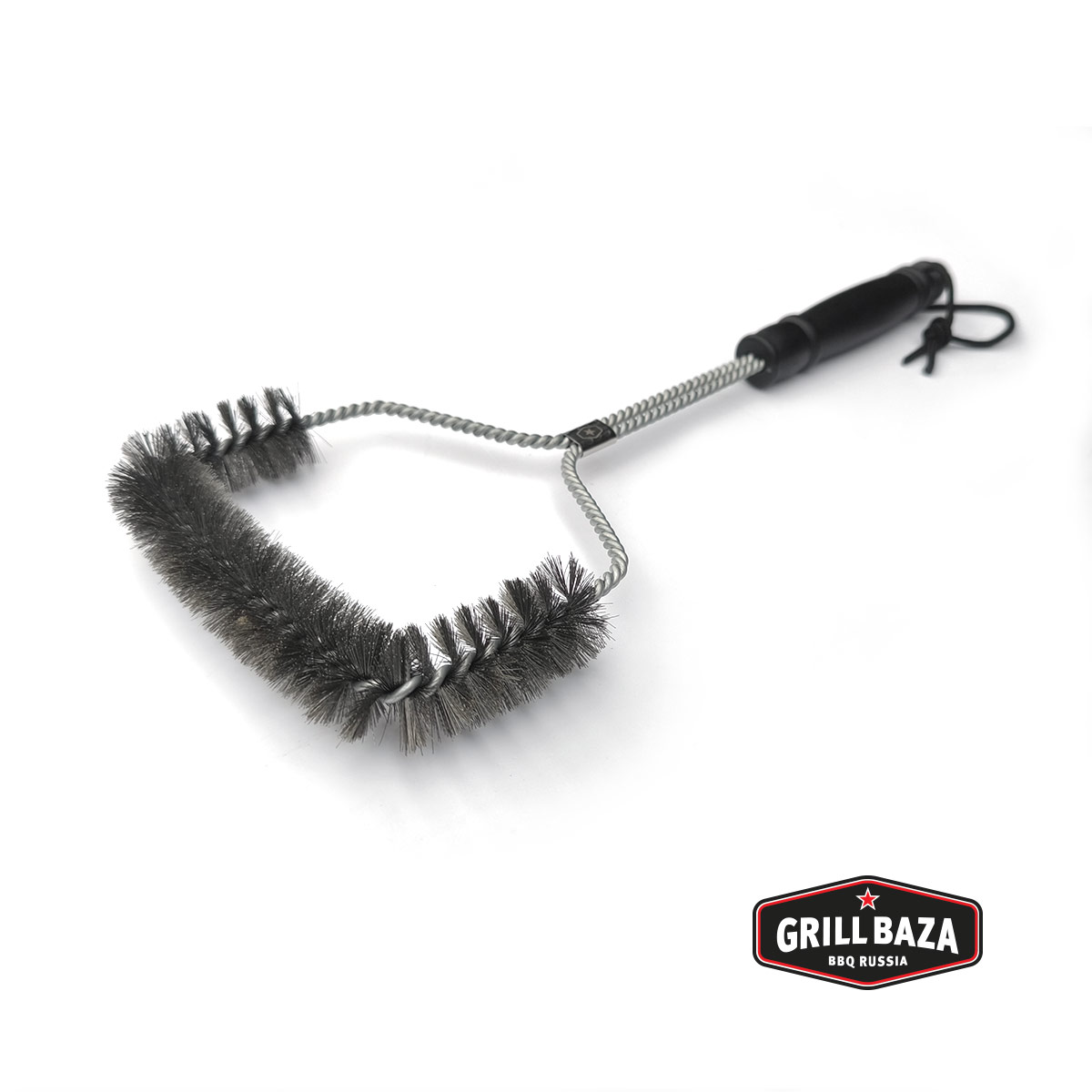 - Щётка для гриля имеет стальные щетинки, прочную пластиковую ручку, а также петлю для подвешивания. Можно определить её на любой крючок, например крючок на ручке гриля