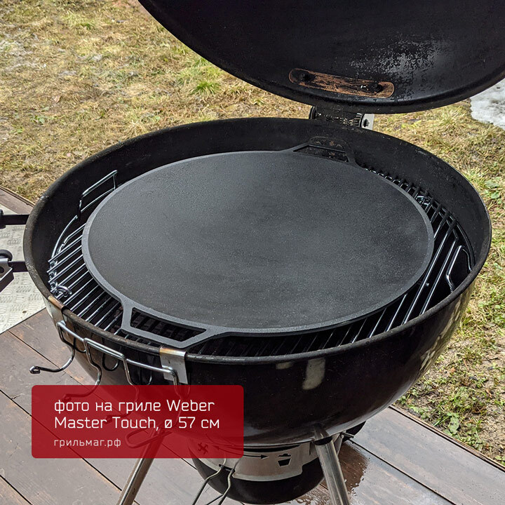 Обалденная сковородка, идеально подходит для 57 грилей. Тяжеловата, но сразу чувствуется что чугун. Очень доволен покупкой. Спасибо.